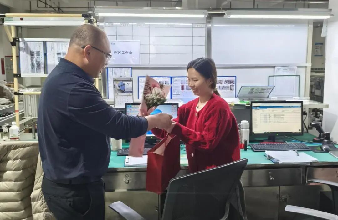 一直以来,深极测始终秉持“以人为本”的管理理念,将员工关怀融入日常点滴,用真诚心意传递企业温度。暖心现场,公司管理团队亲自为全体女神送上精心准备的专属礼物。一份份精致好礼、一句句真挚祝福,承载着公司对每一位女性员工的敬意与关爱,温馨愉悦的节日氛围在办公区悄然蔓延。